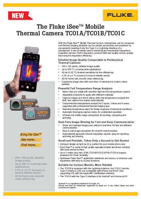 Introducing the Fluke iSee TC01C mobile thermal camera.