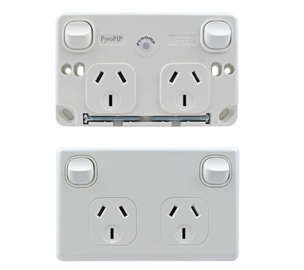 The double pole power point looks like a standard outlet, but is fitted with PyroPIP technology, sensing overheating at the outlet itself.