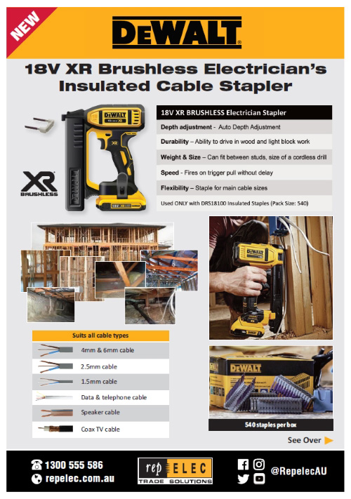 Introducing the DeWalt 18V XR Brushless Electrician's Insulated Cable Stapler.